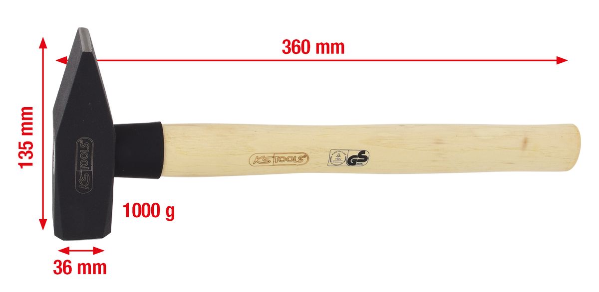 KS TOOLS Schlosserhammer mit Hickorystiel, 1000g ( 142.1400 )