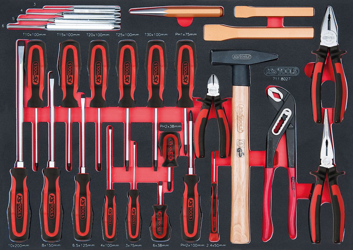 KS TOOLS SCS Zangen- und Schraubendreher-Satz, 27-tlg in 1/1 Systemeinlage ( 711.8027 )