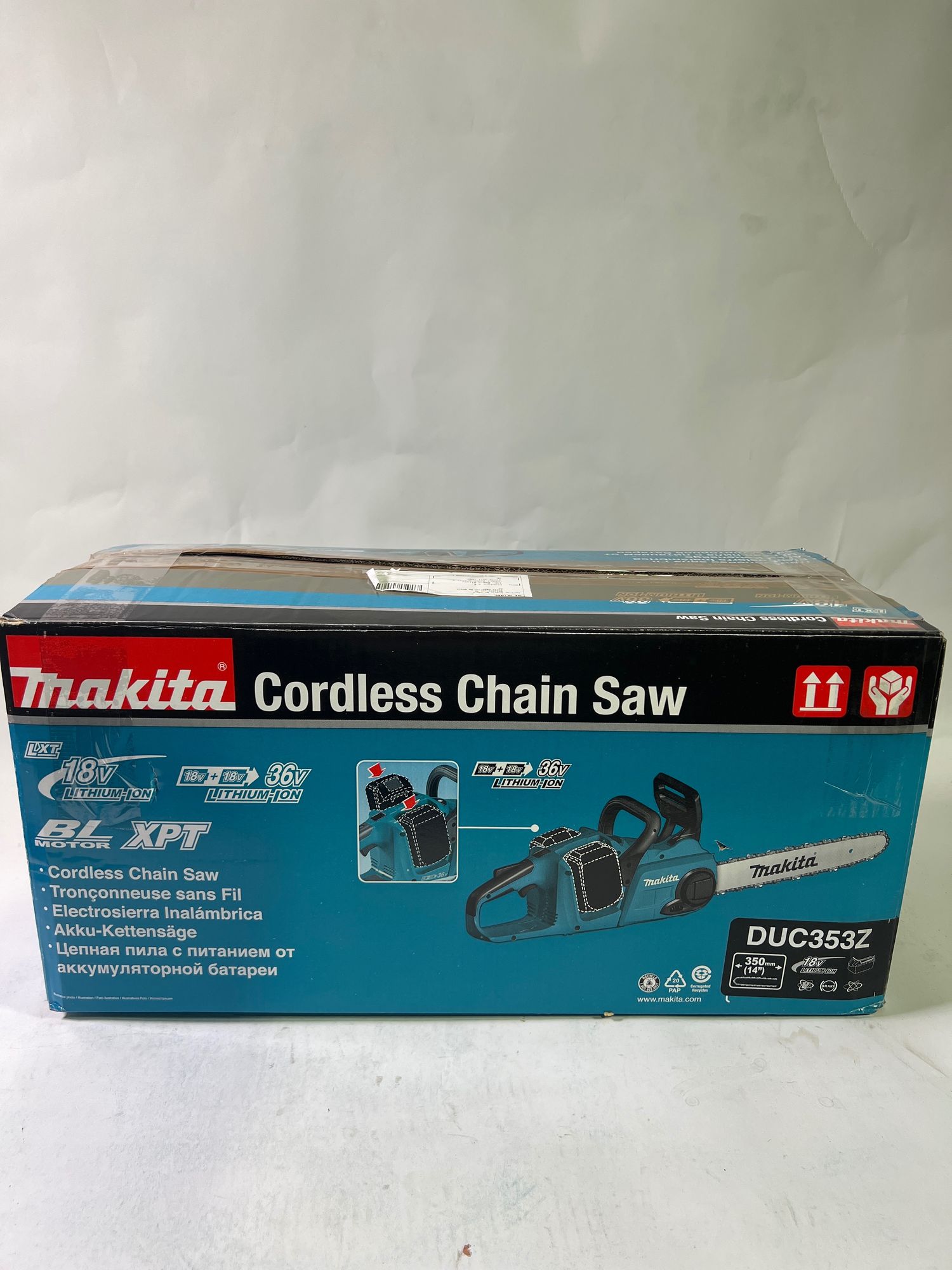 Makita DUC 353 Z Akku Kettensäge 36V ( 2x18V ) Brushless 35 cm Solo - ohne Akku, ohne Ladegerät - Gebraucht
