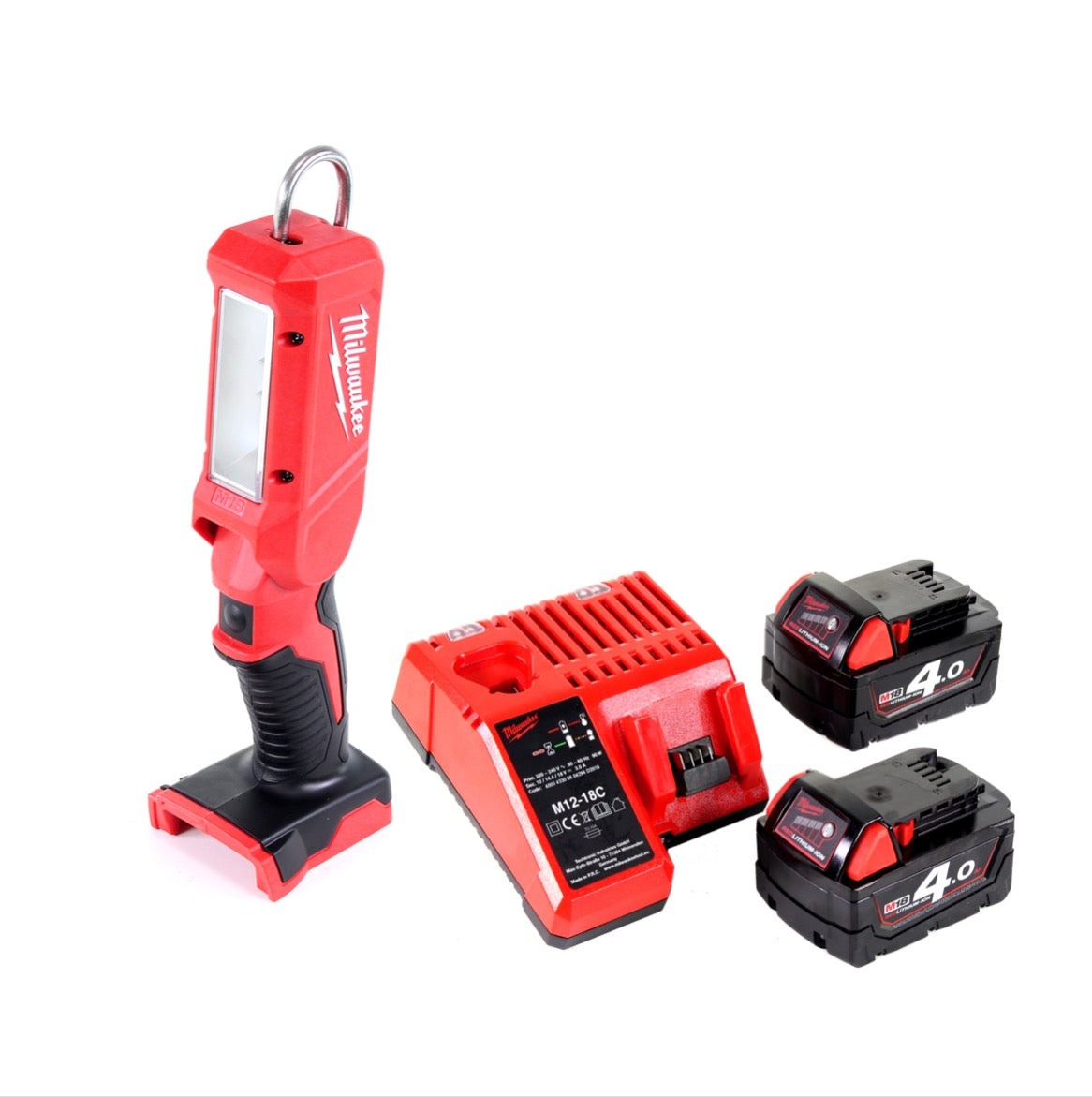 Milwaukee M18 IL-402C Akku Inspektionsleuchte mit 300 Lumen Solo + 2x 4,0 Ah Akku + Universal Ladegerät