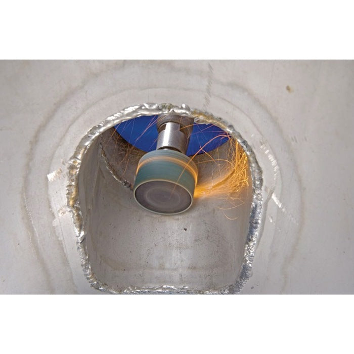 • Anwendungsempfehlung: Für einen sicheren Sitz der Schleifhülse die Mindestdrehzahl des Schleifhülsenträgers einhalten. Für einen leichten Wechsel der Schleifhülsen diese unter leichter Rechtsdrehung auf- und abziehen. Dabei den Schleifhülsenträger in den Werkzeugantrieb eingespannt lassen. Für den Werkstoff geeignetes Schleiföl verwenden, um die Standzeit und Schleifleistung der Werkzeuge deutlich zu erhöhen. Für beste Leistung bei einer empfohlenen Schnittgeschwindigkeit von 20-30 m/s einsetzen.