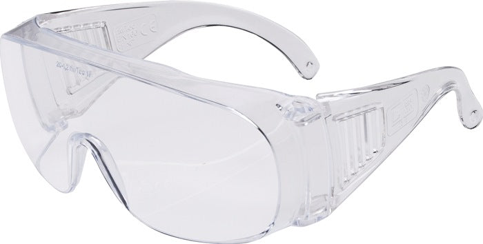 EN 166 · für Besucher · volltransparentes Polycarbonat · schlagbeständig · leicht · für Brillenträger geeignet