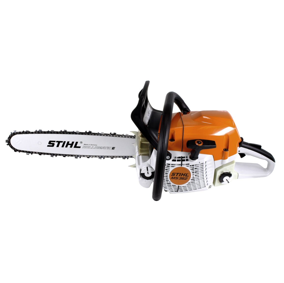 Die Motor betriebene Kettensäge ist zum Sägen von Holz und hölzernen Gegenständen vorgesehen. Für die Forstwirtschaft sind Sägen wie die MS 362  außergewöhnlich leicht, zusätzlich profitieren Profis vom hohen Arbeitskomfort. Extrem zuverlässige, leistungsstarke Kettensäge mit innovativem, kraftstoffsparendem Motorkonzept mit niedrigem Auspuff, langlebigem Luftfiltersystem und vielen Komfortmerkmalen. Das 2-Takt-Triebwerk mit 2-MIX-Technik überzeugt mit starker Motorleistung, herausragendem Leistungsvolumen und hervorragendem Drehmomentsverlauf für hohe Schnittleistung und Durchzugskraft. Dank 2-MIX-Technologie verringern sich der Kraftstoffverbrauch bis zu 20% im Vergleich zu Vorgängermodellen. Damit erfüllt die Kettensöge bereits die strenge europäische Abgasrichtlinie, Stufe II. Trotz seiner Kraft arbeitet der Motor abgasarm, so dass die Verbrennungsemissionen bis zu 50% geringer sind als bei Modellen ohne 2-Mix-Technologie. M-Tronic regelt in jedem Betriebszustand den Zündzeitpunkt und die Kraftstoffdosierung präzise und elektronisch. Und zwar unter Berücksichtigung von äußeren Bedingungen wie Temperatur, Höhenlage und Kraftstoffqualität. Anhand von Motortemperatur und Drehzahl überprüft das Steuergerät kontinuierlich den jeweiligen Betriebszustand der Maschine und dosiert den Kraftstoff fortlaufend so, dass jederzeit eine optimale Motorleistung sichergestellt ist. Der Spezialanwerfgriff Elastostart bewirkt einen gleichmäßigen Anwerfvorgang ohne ruckartige Bewegungen. Das Starten der Maschine wird dadurch deutlich erleichtert. Das integrierte Dämpferelement absorbiert die beim Ziehen am Anwerfseil auftretenden Belastungen. Die Führungsschiene Rollomatic E ist eine universell einsetzbare Führungsschiene. Drei elektrisch verschweißte Metallplatten gewährleisten eine hohe Stabilität. Das abgedeckte Rollenlager im Umlenkstern sorgt für einen verschleißarmen Kettenlauf. Ketten mit normalhohem Zahnaufbau tragen die Bezeichnung "Rapid". Die Vollmeißelketten "Super" verfügen über besonders scharfkantige, rechtwinklige Zahnschaufeln. Die Sägeketten sind für hohe Anforderungen und den intensiven Einsatz wie etwa in der professionellen Holzernte konzipiert.