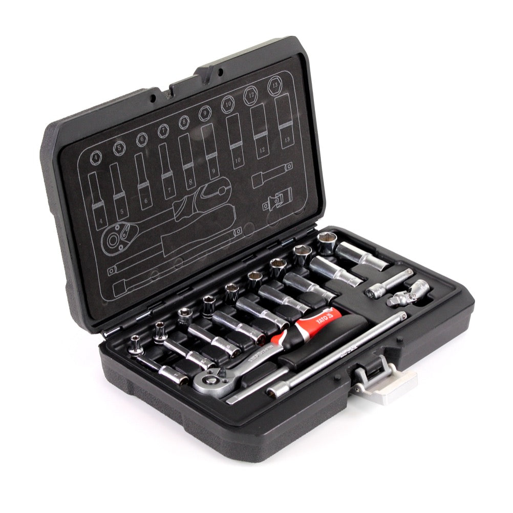 Yato YT-14451 Knarrenkasten 23 tlg. Steckschlüssel Stecknuss Satz 1/4" inkl. Nüsse Ratsche Handgriff
