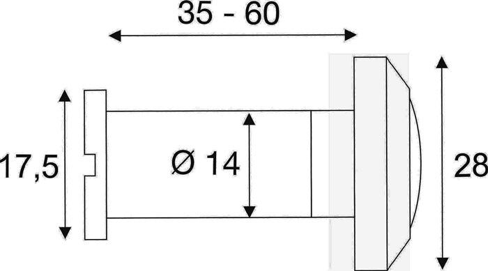 Solid brass housing with plastic lens - For door thicknesses from 35 - 60 mm - Drill Ø 14 mm