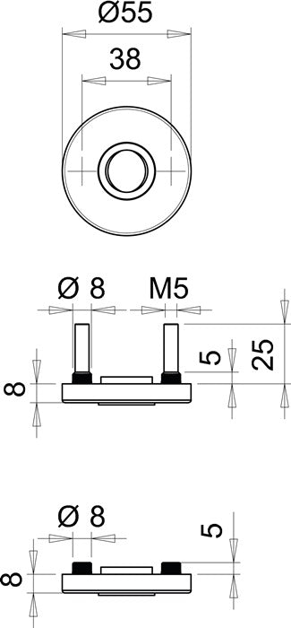 round - on steel substructure - made of stainless steel - rosette Ø 55 mm - rosette thickness 8 mm - cam spacing 38 mm - invisible screw connection - 3000261365 = inner rosette / 3000261366 = pair