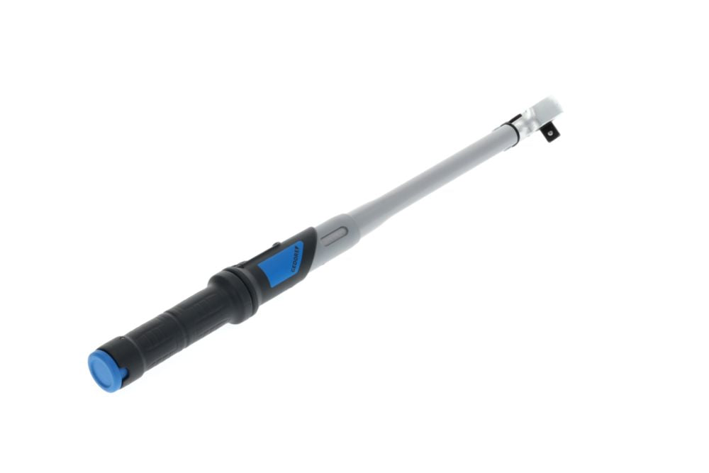 for controlled screw tightening - integrated ratchet - adjustable working range - robust, painted tubular steel construction, with galvanised ratchet and high-quality plastic parts - tactile and audible release signal - classified according to DIN EN ISO 6789:2003 Type II Class A* - release accuracy +/- 3 % of the set scale value - ergonomically shaped, 2-component plastic handle with calibration aid - switchover between main scale N.m and secondary scale lbf.ft. - with micrometre scale for main scale N.m for setting intermediate scale values - ergonomic system for torque adjustment with information symbol - quick adjustment option - secured adjustment adjustment adjustment system Version: with lever changeover ratchet for controlled clockwise tightening * With a traceable works certificate. Calibrated to a permissible deviation of +/- 3 % and better. The standard specification (+/- 4 %) is exceeded for your safety