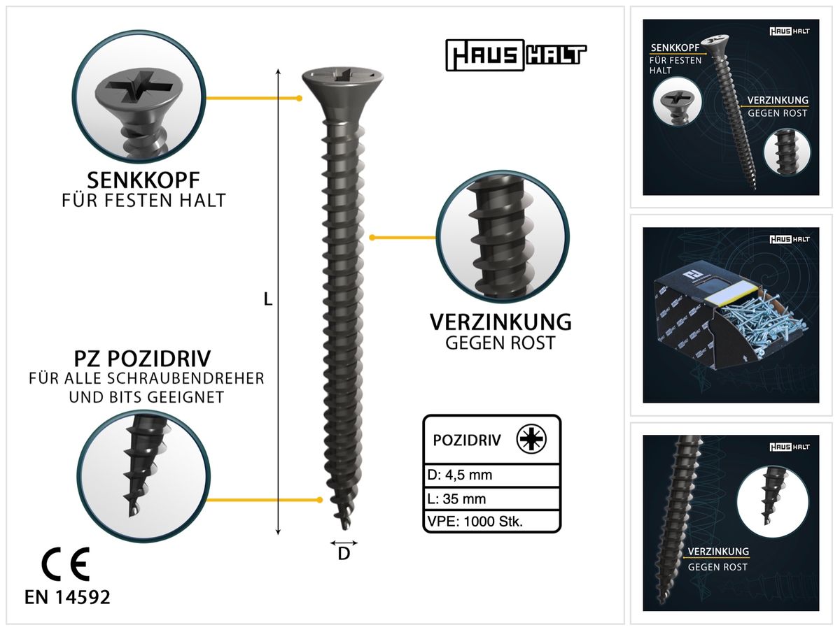 - 1000x HausHalt Universal Wood Screws 4,5 x 35 mm - PZ2 (2x 000051371164)