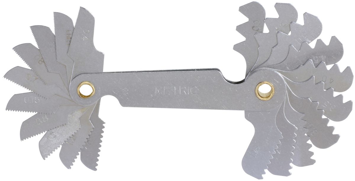 • zum Kontrollieren von Steigungen bei Innen- und Außengewinde