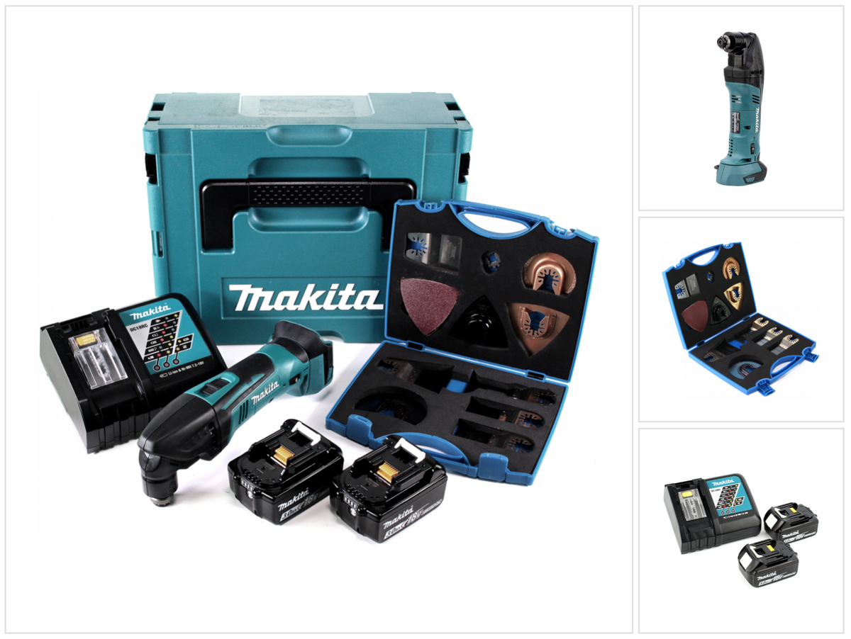 Makita DTM 50 RFJ Cordless Multi Tool 18V + 2x Batteries 3.0Ah + 1x Charger + Makpac + 1x Blade Set WellCut MT-20