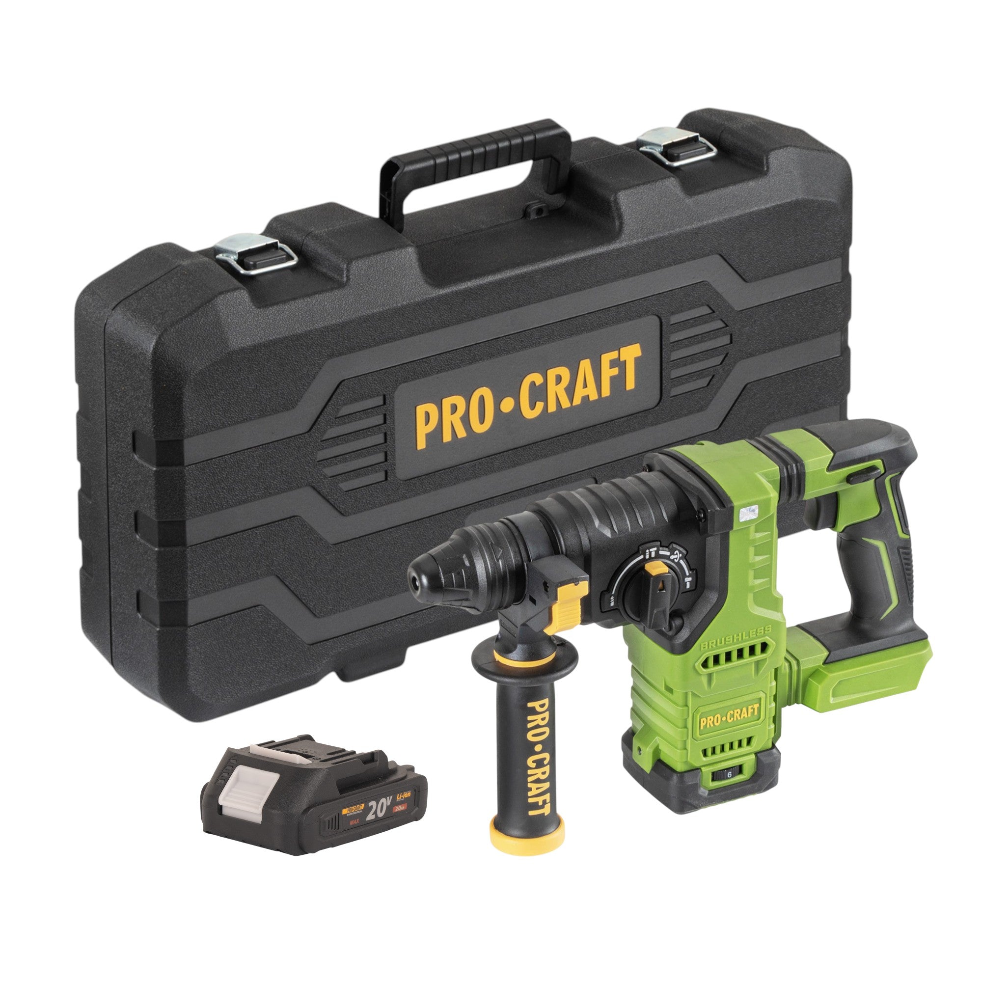 Procraft PHA30-bb-c Akku Bohrhammer 20 V 2,8 J SDS plus Brushless + 1x Akku 2,0 Ah + Koffer - ohne Ladegerät