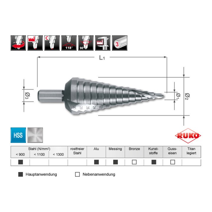 RUKO step drill set Ø 4-12/4-20/4-30 mm ( 4000601745 )