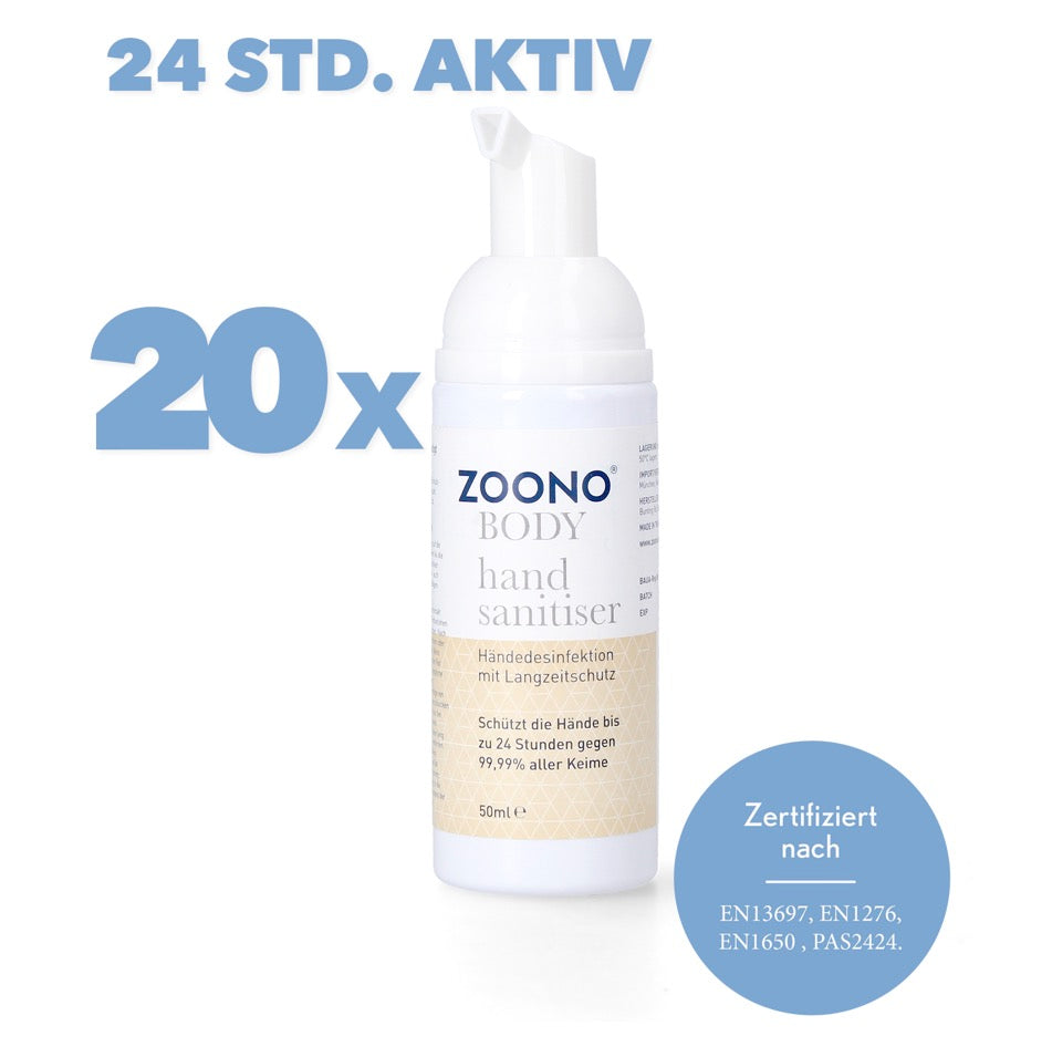 Zoono Germfree24 hand sanitiser 20x 50 ml Protection up to 24 hours against 99.99 % of all germs ( Certified according to PAS 2424 / EN13697 / EN1276 / EN1650 )
