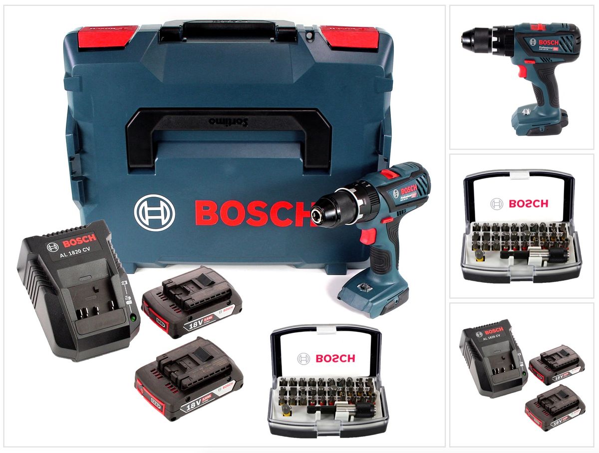 Bosch GSB 18 V-28 Professional Taladro percutor a batería Li-Ion de 18 V en L-Boxx + 2 baterías de 2,0 Ah + cargador + juego de puntas de 32 piezas