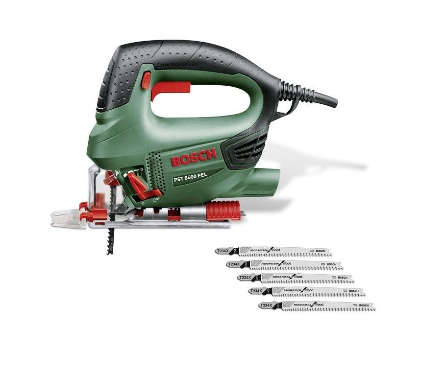 Sierra de calar Bosch DIYer PST 8500 PEL con 5 hojas de sierra en maletín de transporte (06033A0104)