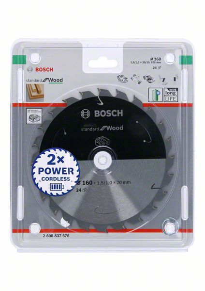 Hoja de sierra circular Bosch Estándar para madera 160 x 1,5 x 20 / 15,875 mm 24 dientes (2608837676)