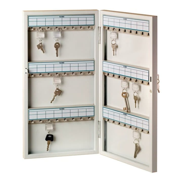 1 puerta · incl. llavero · chapa de acero · listones de ganchos rotulables · puerta magnética con cerradura de cilindro adicional y 2 llaves · preparado para montaje en pared