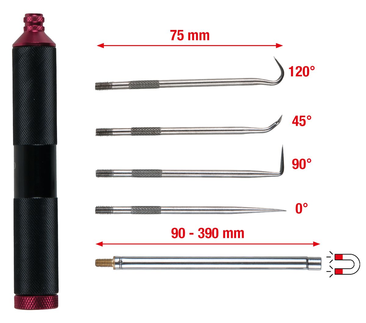 • Con accesorio de imán telescópico y gancho intercambiable