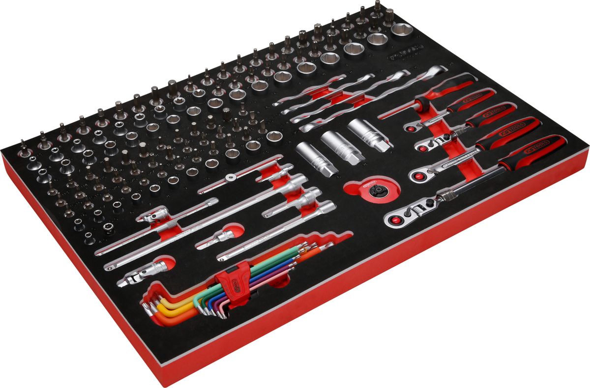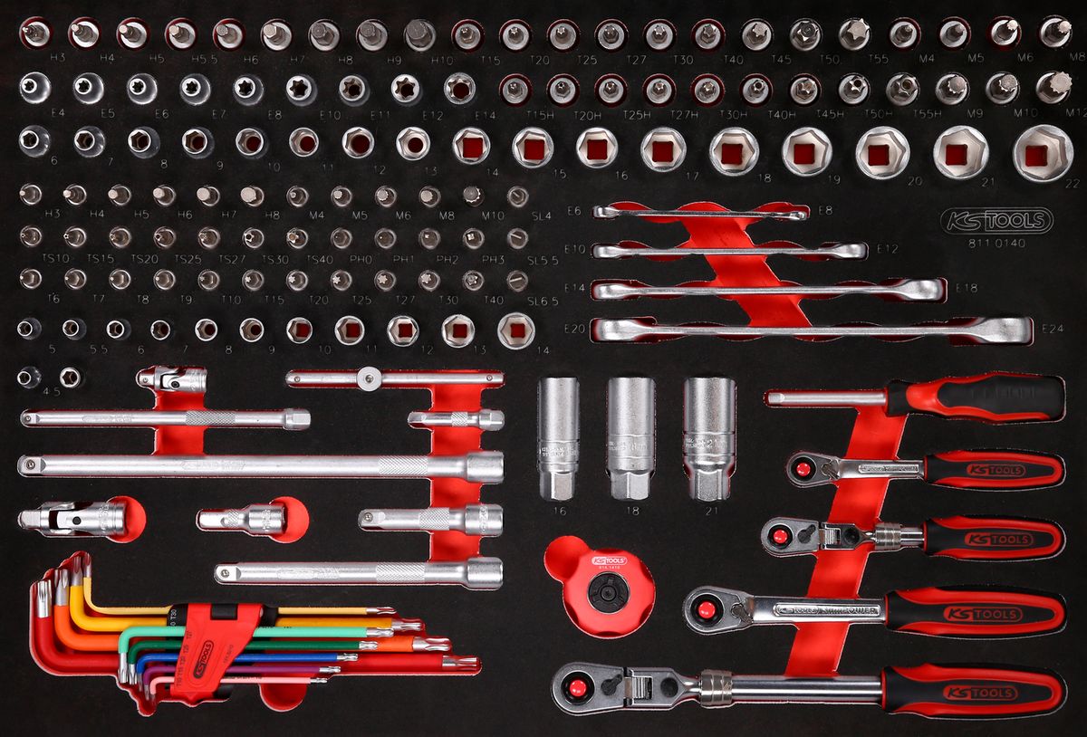 KS TOOLS Juego de llaves de vaso de 1/4' + 3/8' en inserto de gomaespuma, 140 pzs ( 811.0140 )