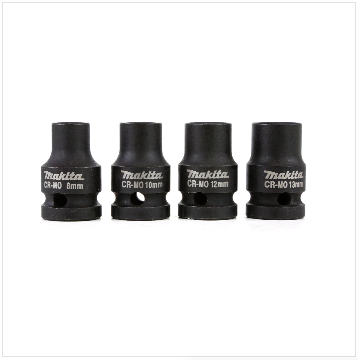 Makita B-54645 Juego de llaves de vaso de 1/2" de 9 piezas. Insertos de vasos hexagonales de 8 - 18 mm con adaptador para vaso hexagonal de 1/4"