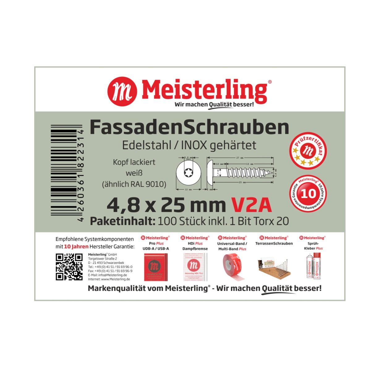 - 100x tornillos para fachada Meisterling 4,8 x 25 mm (010020000001)