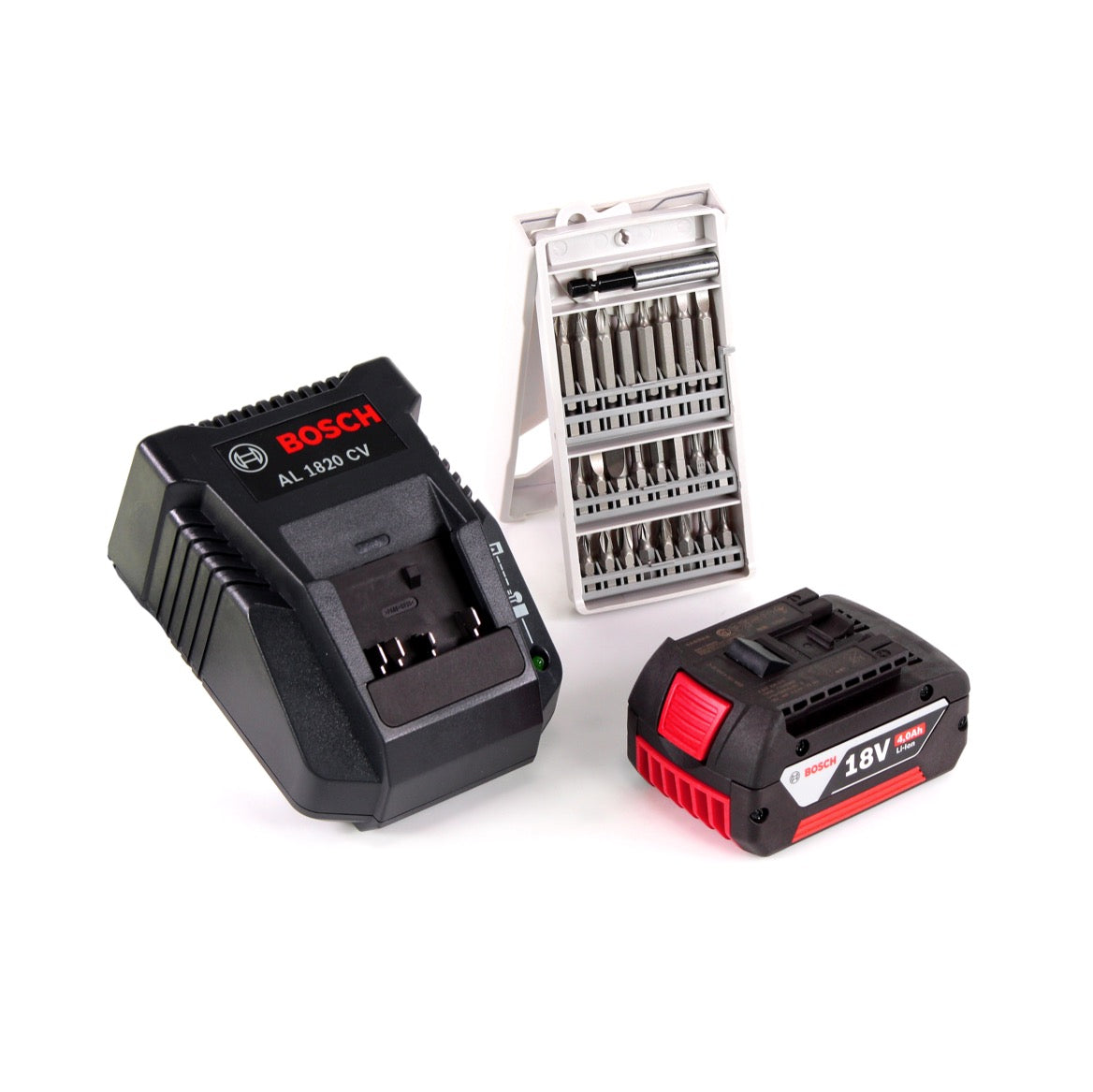 Bosch GSB 18-2-Li Plus Perceuse-visseuse à percussion sans fil Professional 18 V + Coffret de transport + 1x Batterie GBA 4,0 Ah + Chargeur + 25 pièces d'accessoires