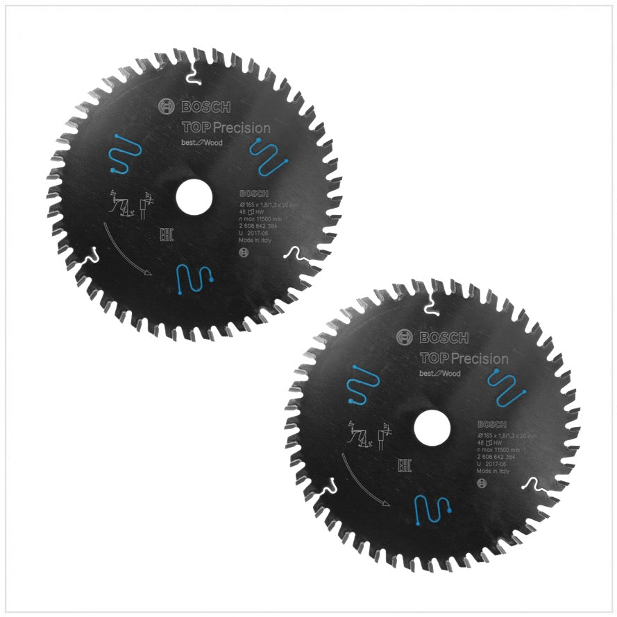 Lame de scie circulaire Bosch Pro Top Precision Best for Wood pour scier le bois pour scies circulaires plongeantes et manuelles lot de 2 (Ø 165 mm) 2608642384