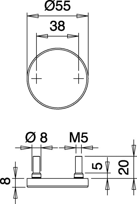 rond - sur support acier - en inox - Ø rosace 55 mm - épaisseur rosace 8 mm - distance entre cames 38 mm - vissage invisible - pour épaisseur de porte 40-65 mm - WC pour épaisseur de porte 40-48 mm