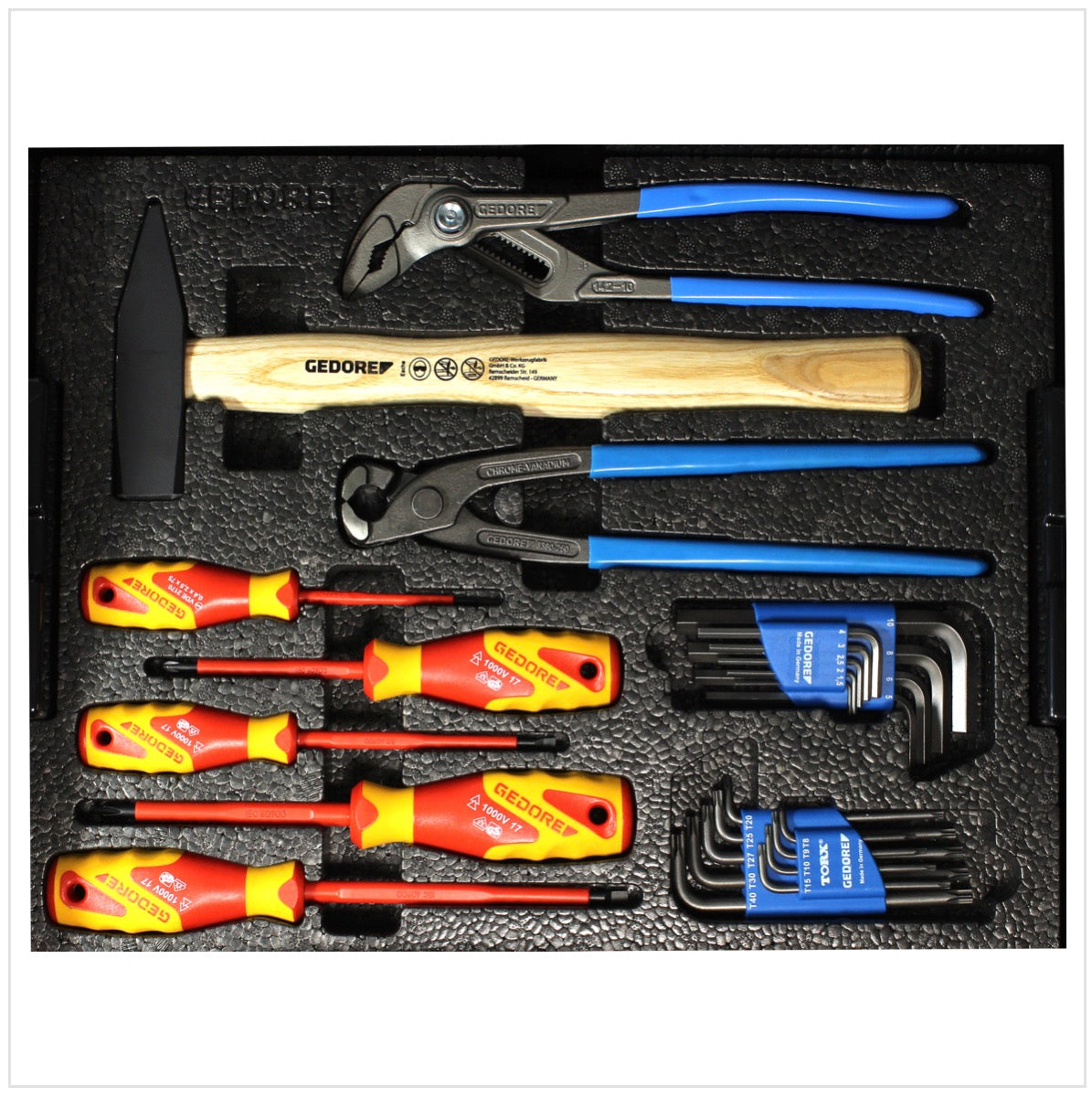 Gedore Coffret de 26 outils avec Tournevis VDE + Marteau + Pince + Tenaille + Jeu de Clés en boîtier L-Boxx