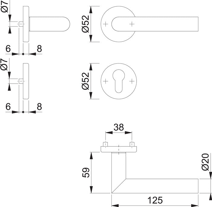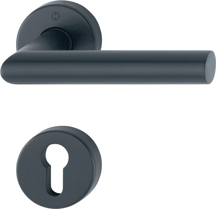 avec rosaces à clé pour portes intérieures - testé selon DIN EN 1906 : 37-0140A, garniture pour objet - F9714M noir mat, carré : 8 mm, avec douille à emboîter/réduire 8/8,5 mm - TS = 37 - 42 mm Logement : poignées de porte en vrac, ressorts de rappel utilisables à droite/à gauche, paliers lisses sans entretien Assemblage : Goupille rapide HOPPE avec goupille pleine HOPPE (partie goupille/partie trou) Sous-construction : plastique, cames d'appui Fixation : invisible, traversante, alternée, vis à usages multiples