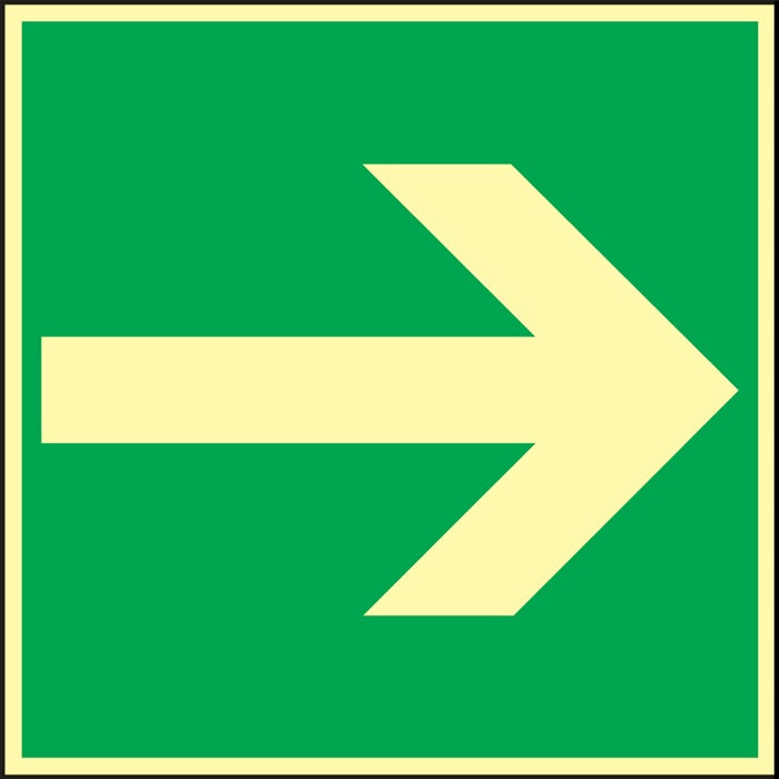 Film autocollant - symbole et bord lumineux photoluminescents - selon ASR A1.3, BGV A8 et DIN 67510 1)Cette flèche de direction ne peut être utilisée qu'en combinaison avec un autre signal de sauvetage