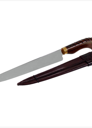 Couteau de cuisine massif de la manufacture de couteaux de haute qualité Serra Grande, ce Faca Campeira  qui signifie couteau de campagne ou couteau des champs fait à la main, est le couteau traditionnel des agriculteurs et des bergers d'Amérique du Sud. Même les tâches les plus difficiles, telles que l'abattage, la dissection et la préparation des animaux de terrain, peuvent être facilement réalisées avec ce couteau. La longueur de sa lame de 22,8 centimètres et son épaisseur de 2 millimètres font de ce couteau la solution idéale pour toutes les tâches de cuisine impliquant de la viande et des légumes. Pour répondre aux normes les plus élevées, seuls les meilleurs matériaux sont utilisés dans la fabrication : La lame est fabriquée en acier suédois inoxydable (X46Cr13 / AISI 420 C). Son noble manche est fabriqué avec le bois de l'Imbuia, également appelé arbre à poivre ou noyer brésilien. Il est solide et durable, et grâce à un séchage, un lissage et un polissage minutieux, il offre un toucher merveilleux.