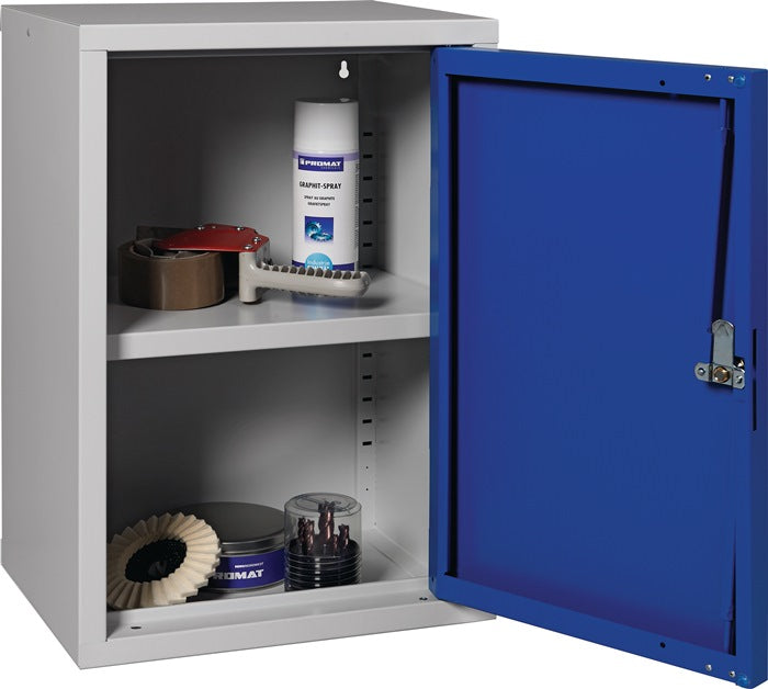 Armadio a muro ( 9000453657 ) H600xL400xP300 mm lamiera piena, 1 ripiano grigio chiaro, RAL 7035/blu genziana, RAL 5010