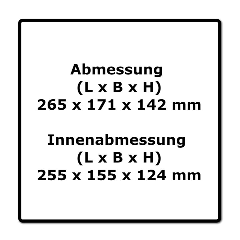 Innenabmessung (L x B x H): 255 x 155 x 124 mm