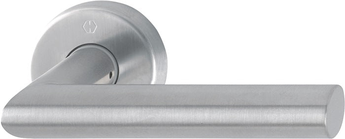 Mezzo set di maniglie a rosetta in acciaio inox con modulo di montaggio a rosetta, senza rosetta a chiave, per porte esterne (interne) - Cuscinetto: maniglia allentata, molla di ritorno utilizzabile a destra/sinistra, cuscinetto a strisciamento esente da manutenzione - Con attacco rapido a perno (perno pieno), premontato nella sottostruttura - Sottostruttura: acciaio, camme di supporto, per porte in alluminio, legno e PVC-U - Fissaggio: a scomparsa, possibilità di fissaggio diagonale supplementare a 4 pieghe, per viti multiuso