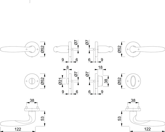 Set di rosette per porte interne: testato secondo DIN EN 1906 (categoria d'uso 3) - maniglie con attacco rapido da 8 mm (con perno pieno) per porte di spessore 37 - 42 mm - rosette per maniglie e chiavi con sottostruttura in plastica - molla di ritorno e camme di supporto - avvitamento nascosto e continuo con viti filettate autofilettanti - direzione di battuta DIN sinistra/destra