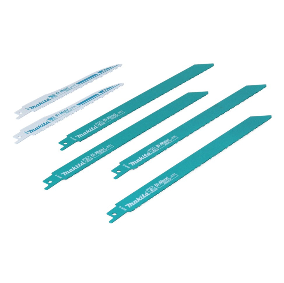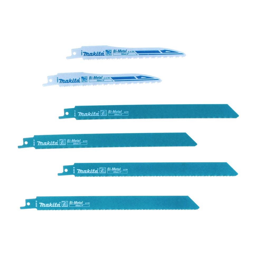 Makita bietet hier ein 6-teiliges Reciprosägeblatt Sortiment für Metallschnitte an. Es beinhaltet je 2 Sägeblätter der Länge 228 mm für Metall und 2 Sägeblätter der Länge 152 mm für Holz und Metall. Die Sägeblätter verfügen über eine geschränkte Zahnung und eignen sich für Grobe Schnitte. Gefertigt sind die Sägeblätter aus Bimetall. Makita ist ein führender Hersteller von Elektrowerkzeugen, der sich durch hohe Verarbeitungsqualität und riesiges 18 V Ökosystem auszeichnet.