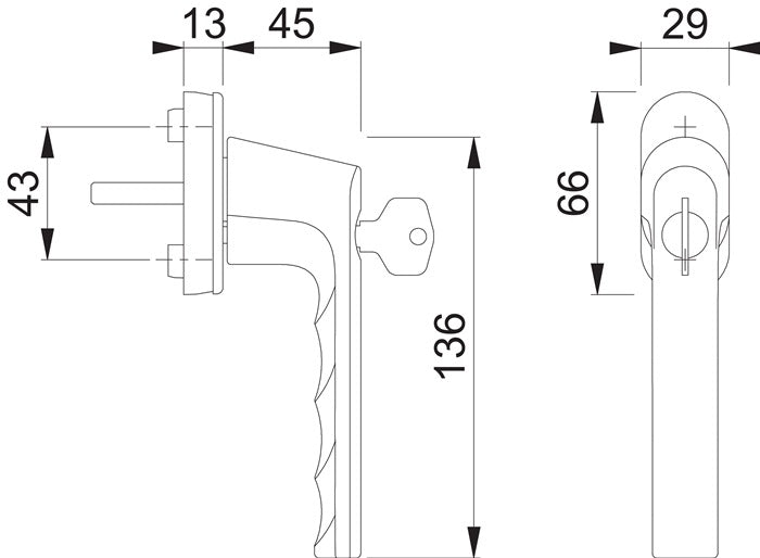 con Secu100® e VarioFit® - chiudibile - Chiusura: cilindro a spinta, chiave reversibile Scatto di chiusura: 90° Coperchio: coperchio parziale Struttura: plastica, camme di supporto Perno: perno pieno HOPPE, lunghezza variabile di 10 mm, regolazione continua grazie alla molla di compressione integrata nel collo della maniglia Fissaggio: a scomparsa, viti filettate M5
