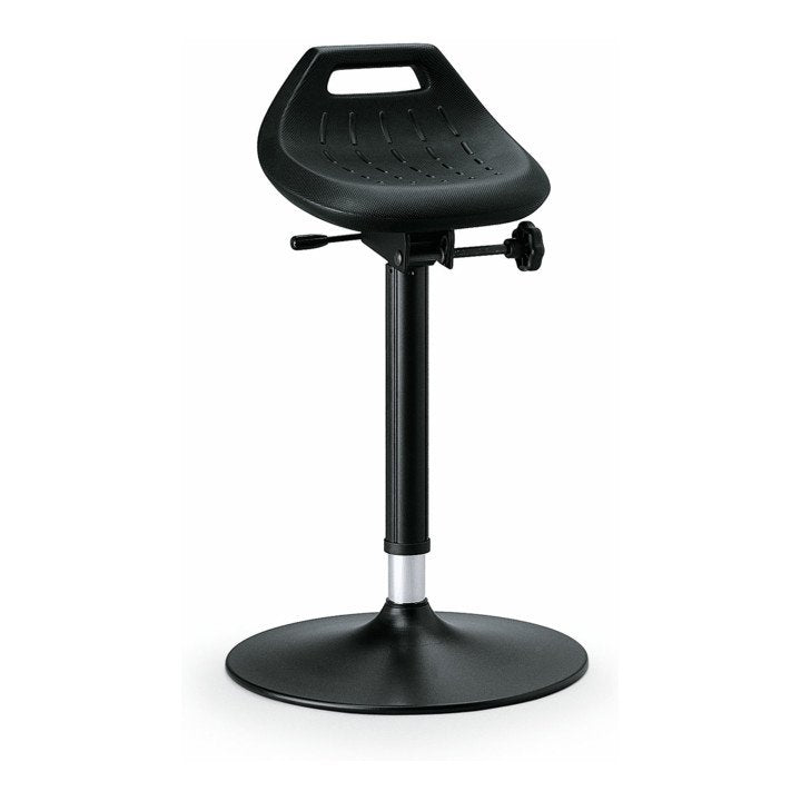 conforme alla norma DIN 68877 - stabile e altamente resistente - regolazione dell'altezza del sedile con molla a gas - superficie del sedile in schiuma integrale di facile manutenzione - parti metalliche rivestite in resina epossidica, antracite - superficie del sedile inclinabile in avanti di 10° e ruotabile di 360° - stabile base a disco piatto Ø 470 mm