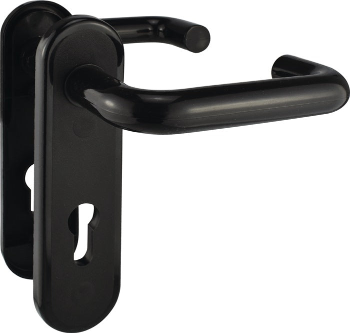Set di maniglie a leva per serrature di porte in metallo leggero - distanza 72 mm - per porte di spessore 40-57 mm - - colore nero - incl. tappi di copertura - maniglia a leva con cuscinetto a perno fisso