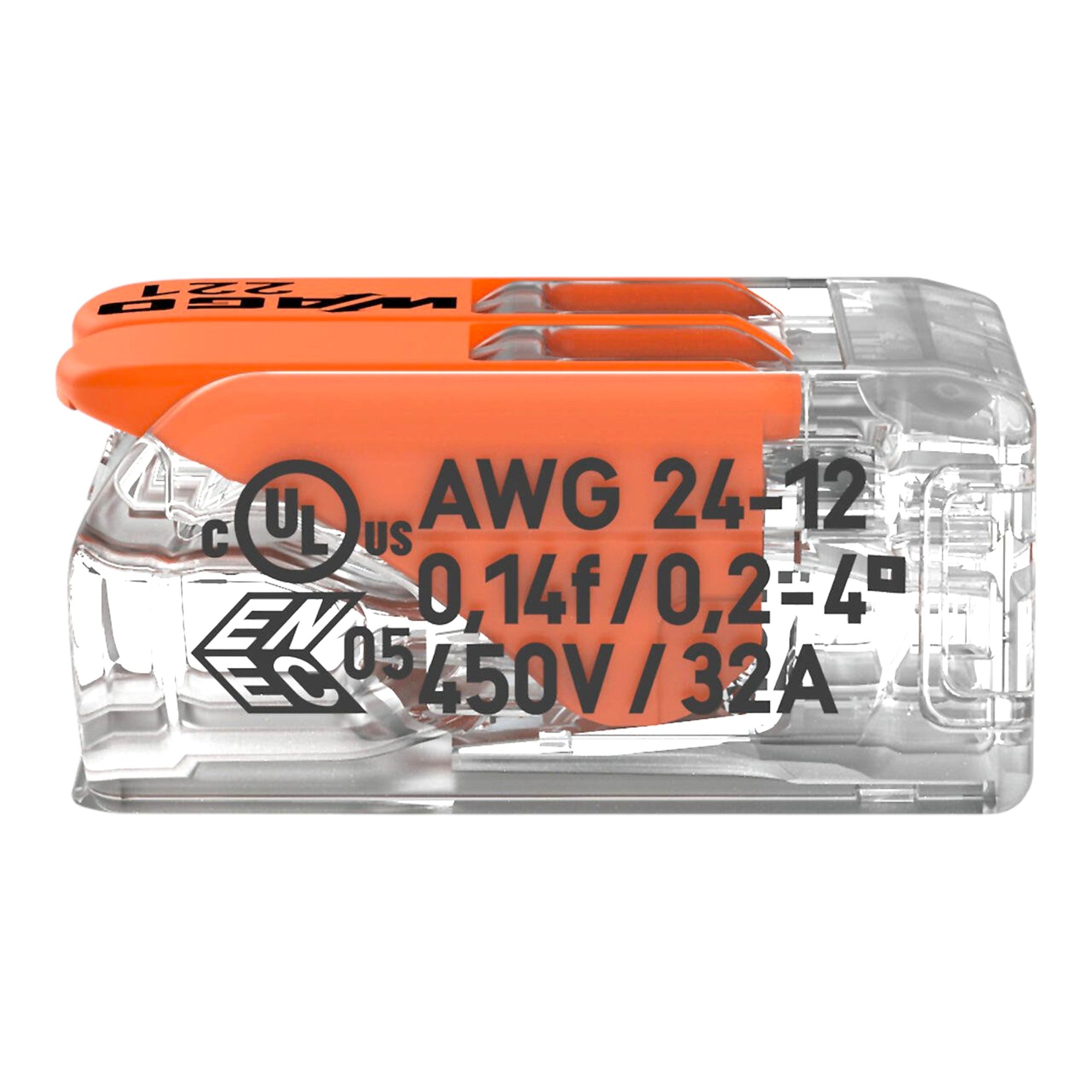 Die Wago 221-412 Verbindungsklemme ist eine kompakte und zuverlässige Lösung für die schnelle Verdrahtung unterschiedlicher Leiterarten – von der Sprechanlage bis zum Anschluss leistungsstarker Verbraucher wie Elektroherde. Mit einer Bemessungsspannung von 450 V und einem Bemessungsstrom bis 32 A eignet sie sich auch für anspruchsvolle Anwendungen. Dank der bewährten CAGE CLAMP®-Technologie bietet sie eine wartungsfreie und sichere Anschlusstechnik, bei der Leiter mit Querschnitten von 0,2 mm² bis 4 mm² ohne Vorbehandlung, etwa durch das Aufcrimpen von Aderendhülsen, angeschlossen werden können. Die erforderliche Abisolierlänge beträgt 11 mm, und mit kompakten Maßen von 13,1 x 8,3 x 18,6 mm (B x H x T) überzeugt die Klemme durch platzsparendes Design. Das transparente Gehäuse ermöglicht eine sofortige Sichtkontrolle des normgerechten Leiterkontakts, während die flachen, ergonomischen Hebel ein werkzeugloses und komfortables Verbinden gewährleisten. Durch ihr modernes Design mit nahtlos in den Grundkörper integrierten Hebeln und der charakteristischen Klaviaturoptik steht die Wago 221-412 für Innovation, Sicherheit und funktionale Ästhetik – „Made by WAGO“.