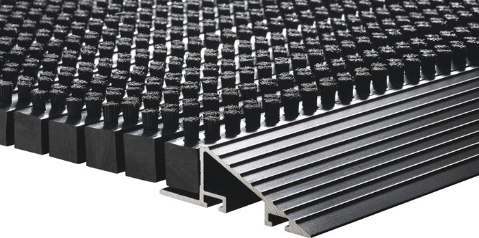 con bordo in alluminio nero - spazzole di pulizia nere in 100 % PP - spessore circa 22 mm - per uso esterno