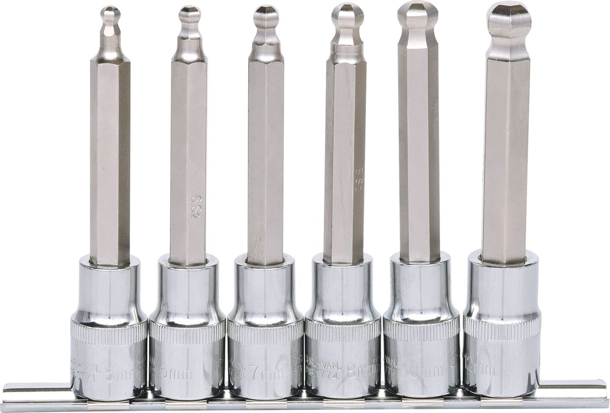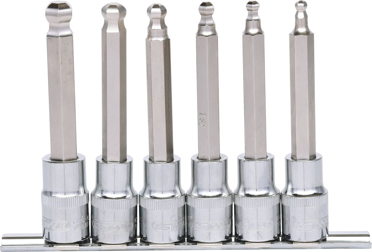 KS TOOLS 1/2" CHROMEplus Bit-Stecknuss-Satz Innen6kant, Kugelkopf, 6-tlglang, 5-12mm ( 918.1665 )