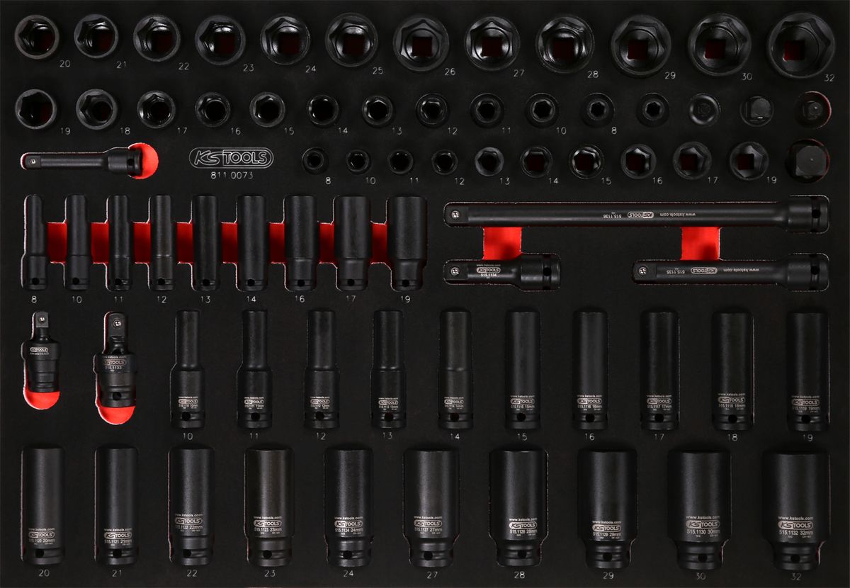 KS TOOLS 3/8'' + 1/2'' Kraft-Steckschlüssel-Satz in Schaumstoffeinlage, 73-tlg ( 811.0073 )
