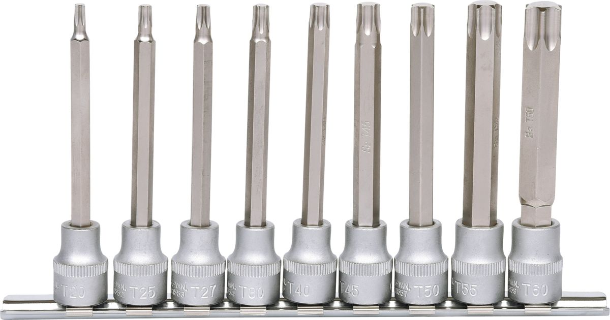 3/8" Bit-Stecknuss-Satz Torx, lang, 9-tlg, T20-T60 · Bit-Stecknuss-Satz für Torx-Schrauben, lang