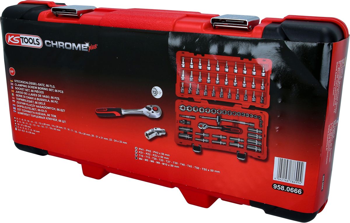 KS TOOLS 3/8" CHROMEplus Steckschlüssel-Satz, 66-tlg ( 958.0666 )