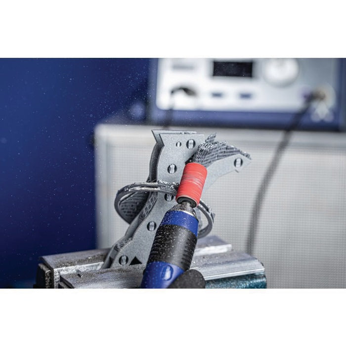 - Zalety: Pewne dopasowanie tulei ściernej do uchwytu tulei ściernej dzięki rozszerzaniu się uchwytu podczas użytkowania. Rozmiar opakowania jest idealny do zastosowań przemysłowych. Wyjątkowa żywotność dzięki specjalnemu procesowi produkcji - nawet w najtrudniejszych warunkach pracy. Maksymalna opłacalność dzięki szczególnie wysokiej wydajności usuwania materiału i wysokiej agresywności ścierniwa.