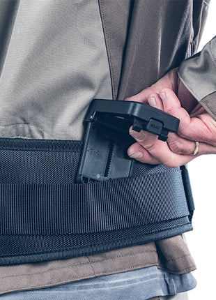 Uchwyt ProClick jest centralnym elementem systemu i umożliwia wydajną pracę. Sprytne połączenie zatrzaskowe sprawia, że kłopotliwe nawlekanie i rozwijanie paska należy już do przeszłości. Dzięki prostemu mechanizmowi zatrzaskowemu uchwyt można błyskawicznie zdjąć lub przymocować do paska. Uchwyt jest wyposażony w tak zwany ClickUnit, do którego można bezpiecznie przymocować różne torby narzędziowe, elastyczne rozwiązania do przechowywania i solidne uchwyty. Można je zatrzasnąć na uchwycie i bezpiecznie przymocować jednym ruchem. Oznacza to, że zawsze masz pod ręką swoje narzędzia i możesz z łatwością przełączać się między różnymi zadaniami. Jeśli potrzebujesz innych narzędzi, woreczki narzędziowe przymocowane do uchwytu można szybko i łatwo odłączyć jednym dotknięciem palca i zastąpić je wstępnie zamontowanymi woreczkami narzędziowymi.