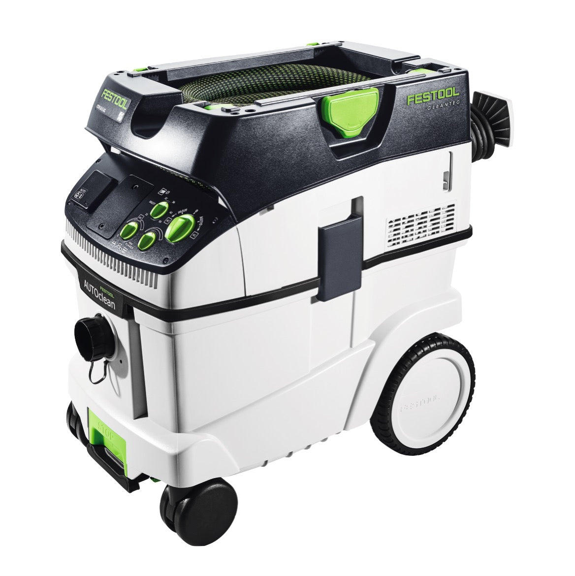 Bei dem Absaugmobil der Marke Festool hat man den Vorteil: Nie wieder zugesetzte Filter - denn die automatische Hauptfilterabreinigung Autoclean (AC) hält den Filter frei und stellt eine konstant hohe Saugleistung sicher. Der Cleantec CTM 36 AC mit 36 Liter Behältervolumen bietet durch seine großzügige Behältergeometrie viel Volumen bei hoher Flexibilität. Ausgestattet mit schwenkbaren Lenkrollen und Hinterrädern ist für ideale Mobilität garantiert. Eine Feststellbremse sorgt für sicheren Stand auf jedem Untergrund und beim Transport. Volle Volumenausnutzung sichert der vollständig in den Saugerkopf integrierte Flachfilter: so sind Behälterbruttovolumen und Nettovolumen nahezu identisch. Die extrem kompakte Hochleistungsturbine liefert die dazu passende Absaugleistung: 3900 Liter pro Minute Volumenstrom, da bleibt nichts zurück außer reiner Luft. Es ist für Staubarten der Staubklasse M zugelassen.