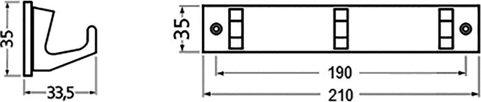 - 1x HERMETA Handtuchhakenleiste 3 Haken Höhe 35 mm Länge 210 mm